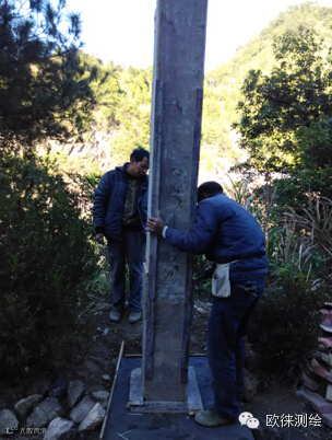 混凝土墩浇筑,材料用C32强度的混凝土,和小花岗岩石块、河沙浇筑而成,混凝土墩上面预埋强制对中盘。