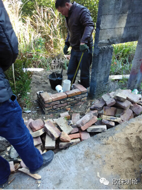 观测墩土建,水闸旁边的观测墩开始建造,挖开1×1m深750px的坑