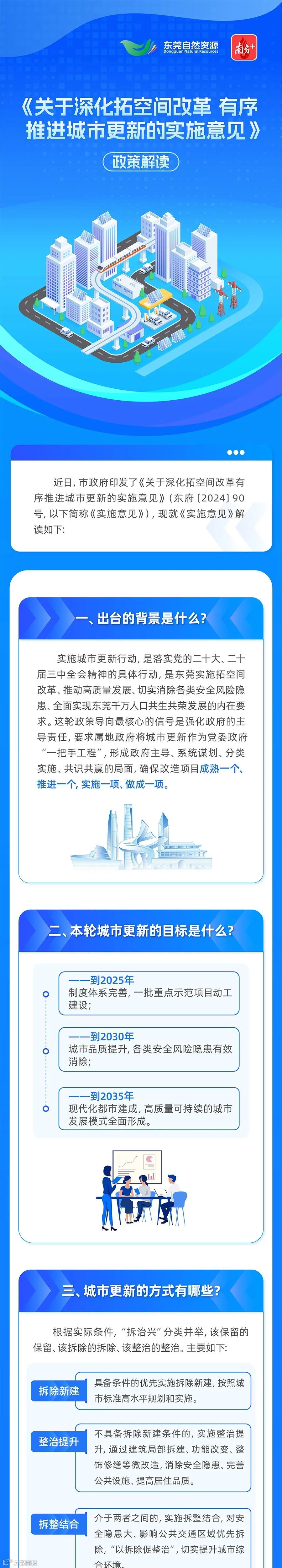 玖顺控股近日,东莞市政府印发《关于深化拓空间改革 有序推进城市更新的实施意见》,进一步强化政府的主导责任,要求属地政府将城市更新作为党委政府“一把手工程”,形成政府主导、系统谋划、分类实施、共识共赢的局面,确保改造项目成熟一个、推进一个,实施一项、做成一项。新政还强调,除存量项目、政府收储项目、城中村改造项目外,原则上禁止“工改居”项目。