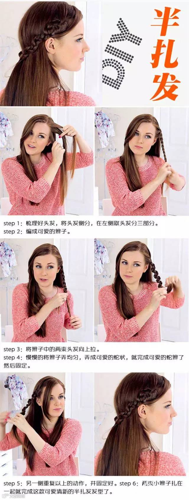 半扎发的披发更显得淑女浪漫。可爱又小清新。