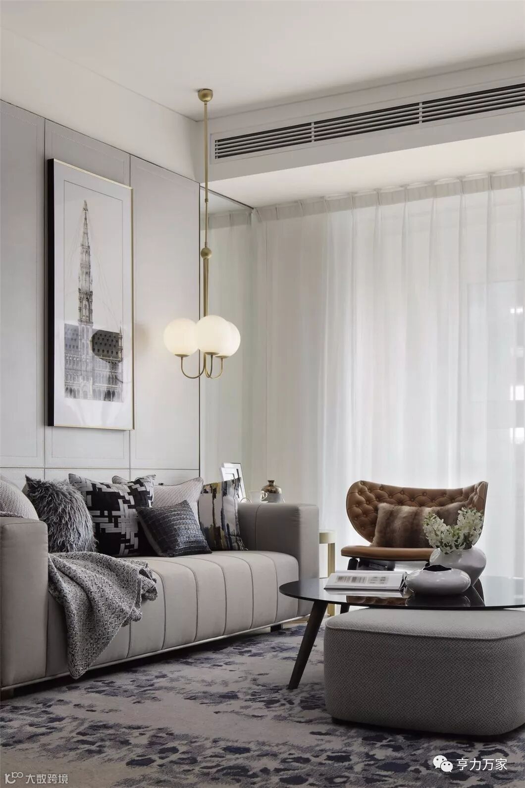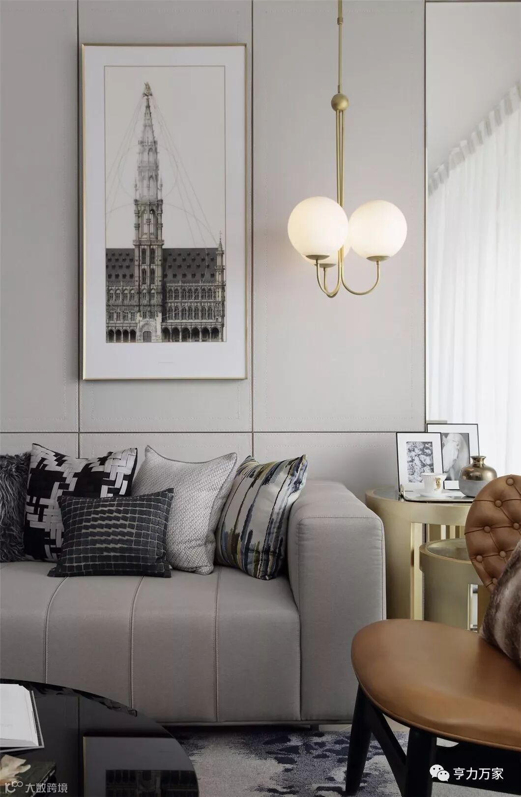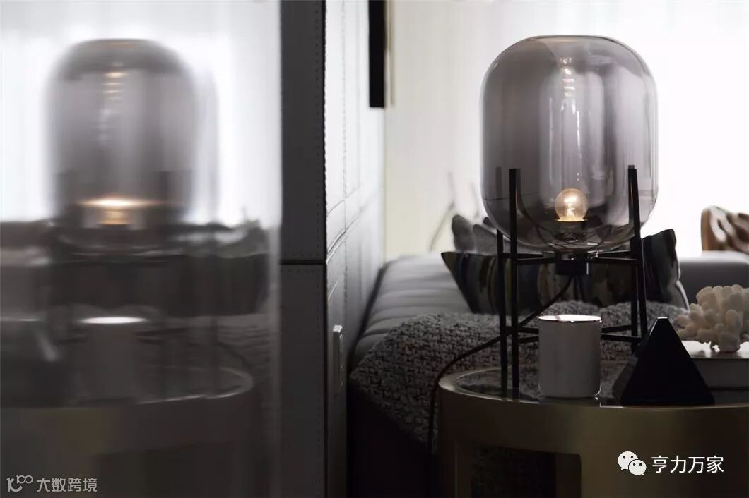 水银色复古灯具里的暖色豆光,扎实中透着灵动,给银灰色的空间染出一抹热情,仿是黑夜中透出的灯火,在夜的隐秘中守候着家人。
