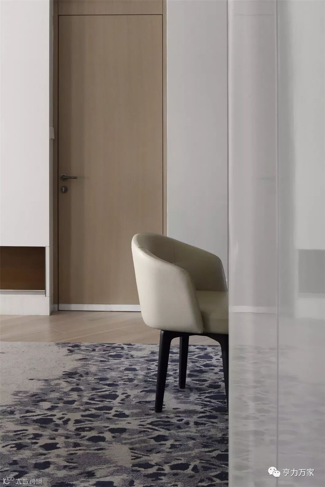 细脚座椅的选择让空间没有因为大片灰调而“寸步难行”,而在陈设上更是延伸了视线,拓宽了空间里的“心机”;角落里金属圆桌以自身冷静的线条,不经意间裸露出原始质感,将多重灰色的层次感呈现得愈加饱满丰富。