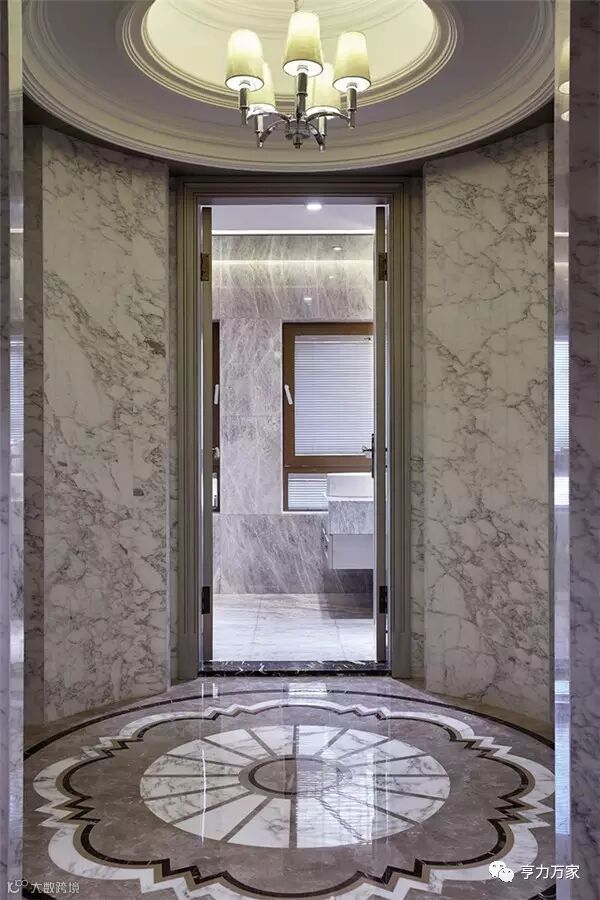 过道的尽头,圆形空间处理使得过道与各个功能区之间的转换变得更加有设计感