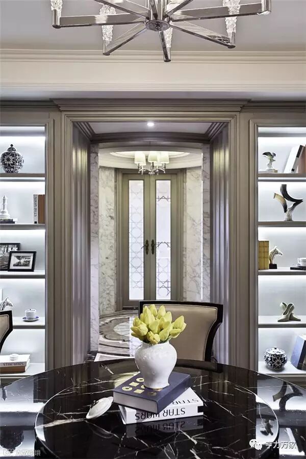 设计手法遵循传统的是一种半围合式的空间处理方式,将原有的复杂线条及叠级关系,通过空间的转换及面的过渡来简化处理,保留了一种对称的古典空间美学,并以一种全新的家居形态呈现另一种高端生活方式……