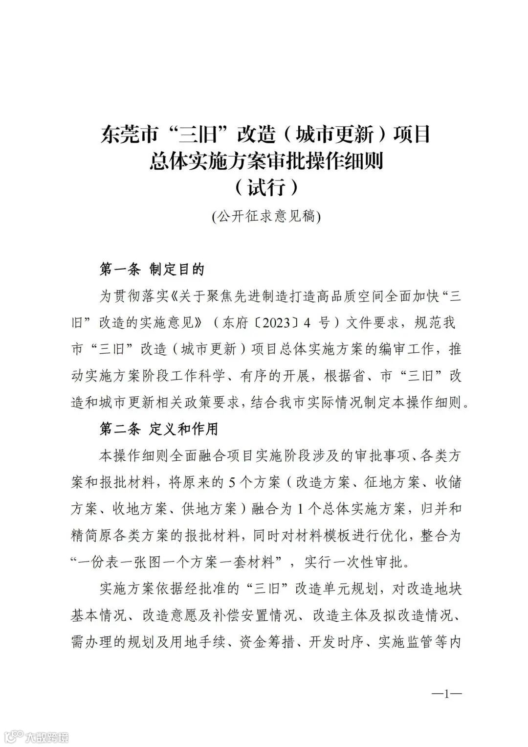 附件4:东莞市“三旧”改造(城市更新)项目总体实施方案审批操作细则(公开征求意见稿)