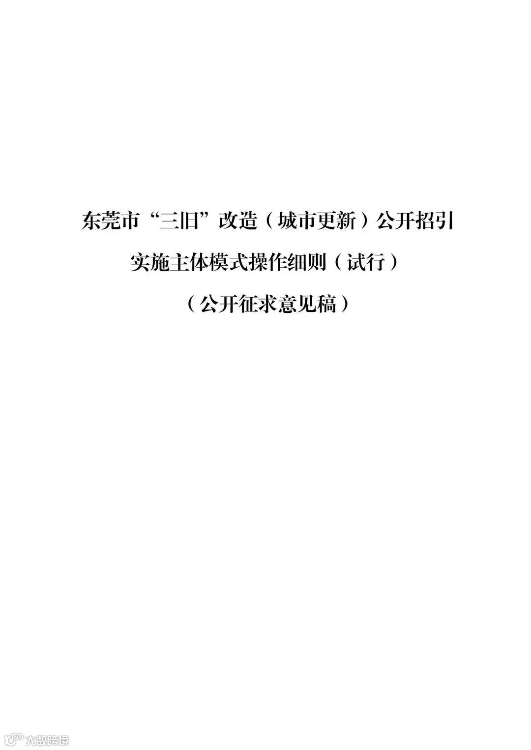 附件1:东莞市“三旧”改造(城市更新)公开招引实施主体模式操作细则(试行)