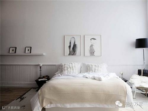 地面铺着原木的实木地板,墙壁和天花板刷白,整个空间看上去清爽雅致,选配了白色的床品,床头墙壁上挂着素雅风的装饰画,很清新朴实。