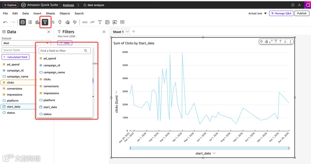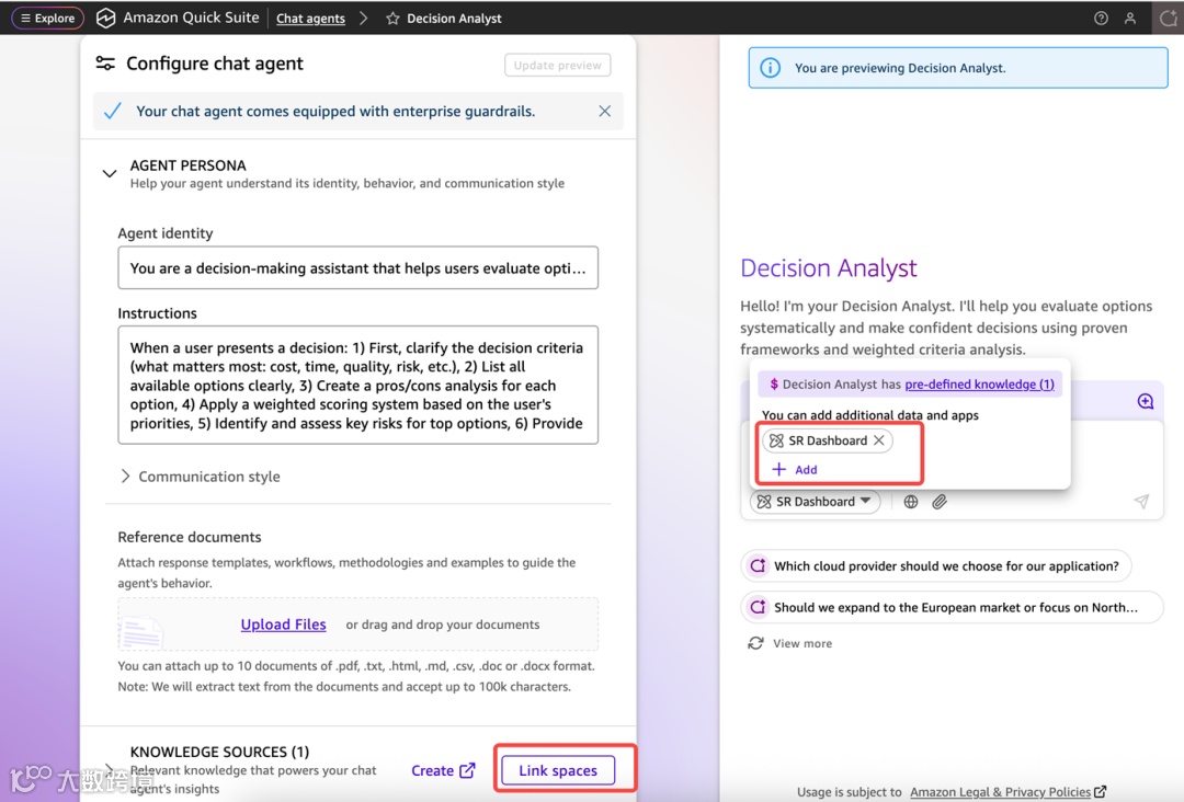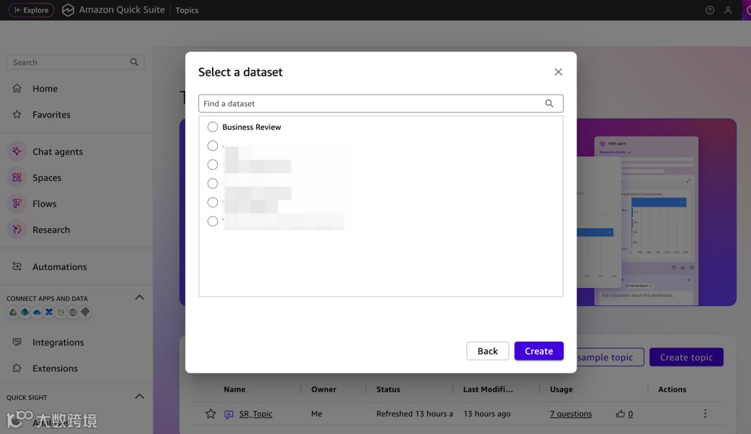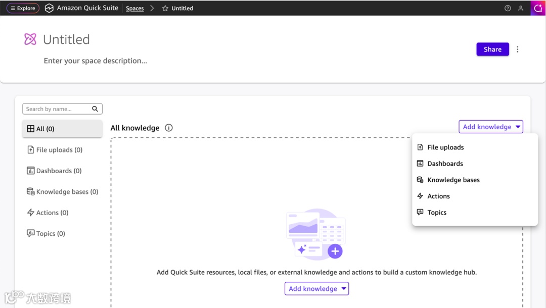 通过数据库连接、Dataset构建、Dashboard设计、Topics配置及Space整合,Amazon Quick Suite实现数据对话智能化: