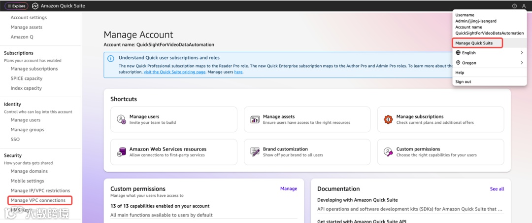 前提条件:Amazon Quick Suite Enterprise版;管理员权限;已配置VPC基础资源。