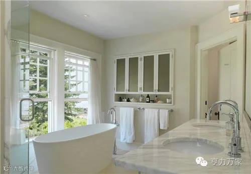 卫生间内,白色调的整体橱柜及卫浴门设计给人带来了极为舒适淡雅的气质,彰显出了居室内的自然与舒畅感。曲线雕花的镜面,将欧式风格的典雅与传统魅力表现到了极致。而卫浴门半透明的设计使得明亮的光线照进居室,尽显通透与大气感。