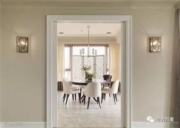 不动建筑结构,让餐厅成为独立空间。视觉从客厅向内探入,画框里如同欧洲餐厅的景色,让人感觉十分赏心悦目。