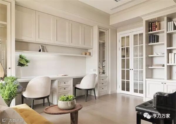在实用的基本功之外,书房全数使用米色调,净化放入书本后琳琅满目的视觉凌乱,给人纯净舒服的感受。