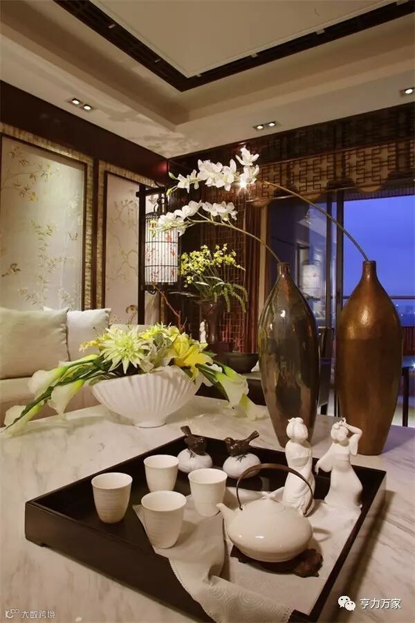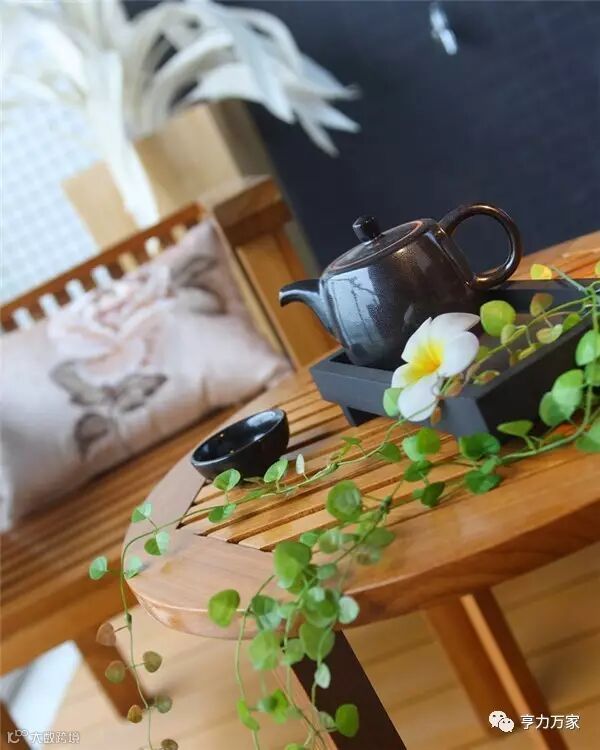 并以植物、瓷瓶、茶具等