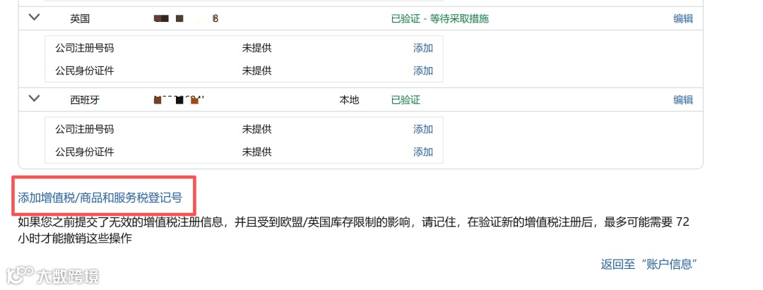 点击【添加增值税/商品和服务税登记号】