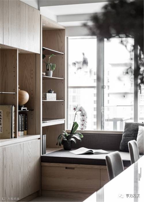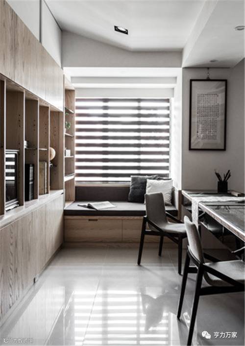 充足采光条件、高容量收纳空间、现代极简艺术风软装,让书房在自然光的沐浴下,无限通透、静雅。