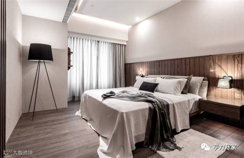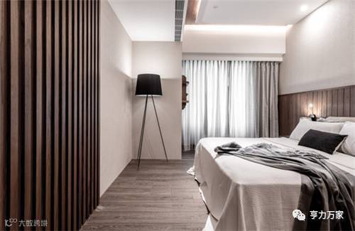 空间大面积留白,使原本采光充足的卧室更显得敞亮、舒适。单色、纯色的布艺软装在静雅的空间里,更容易使人释下重负、进入最佳休息状态。