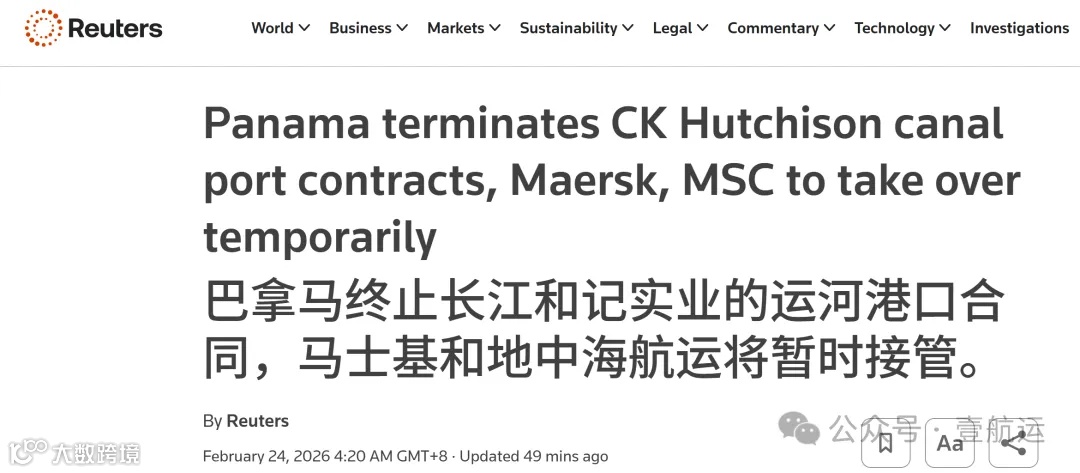 "巴拿马运营风险并非迫在眉睫,但需提前防范。"Holmes强调。争端源于巴拿马政府2026年初撤销中国香港企业CK Hutchison长期特许权,认定该协议违宪后接管了运河两端巴尔博亚与克里斯托瓦尔码头运营。期间码头临时移交APM Terminals(马士基旗下)及地中海航运等企业,目前已触发仲裁程序并引致中方政治压力。