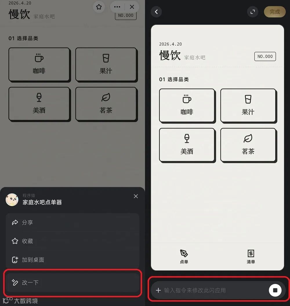 例如,用户可在“家庭水吧”应用上新增预约功能,全程无需理解代码逻辑。其机制区别于传统开源Fork:保留意图结构重新生成应用,确保版本质量与迭代效率。这缩短了开发路径,支持接力创作,激发类似开源社区的活力——好应用通过多轮演化持续完善。