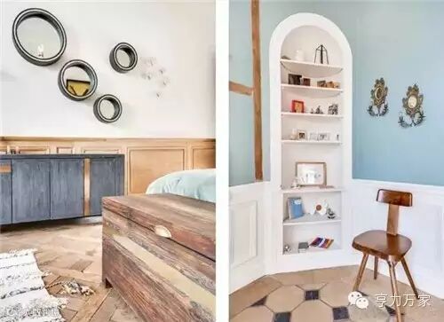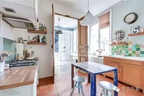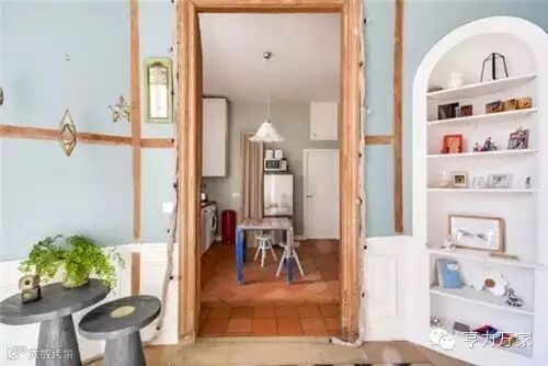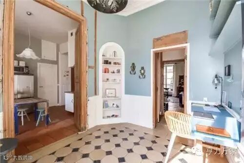 在法国设计师Tatiana Nicol布置的这间复古公寓中,复古的地砖花色和木地板拼接,搭配充满岁月痕迹的木质感家具,又在局部墙面加入有趣的色块,既保留以往温暖经典的老欧式风情,又添加现代的活力元素。
