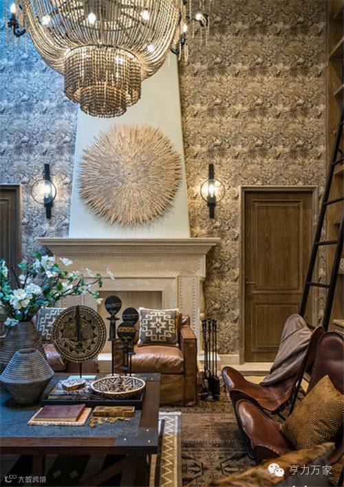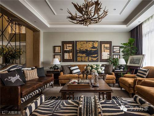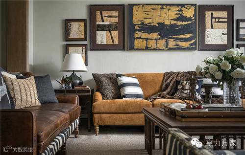 自由与舒张,主人会客厅的最高价值取向,桌上的植物标本,墙面挂画,大型吊兰植物等与草原的情景较好的融合在一起。