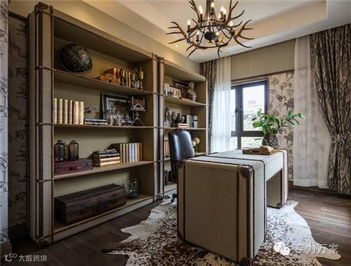 书房营造了置身野外探索家的室内氛围,设计通过生动的艺术再现,渲染出一个令人遐想无限的、极富视觉感受的整体空间。