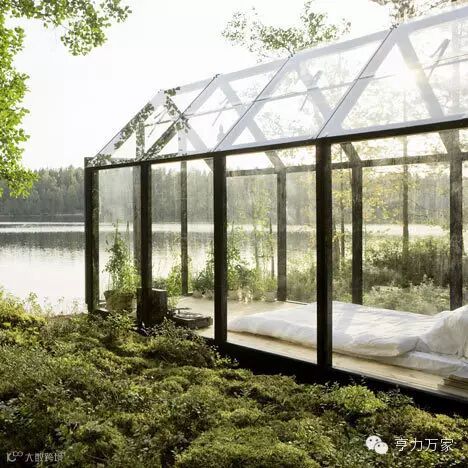 这是芬兰建筑师VileHara和设计师Linda Bergroth共同设计的透明屋。它将工具房与休息室合二为一,透明的玻璃墙外是森林,让整个卧室自然清新味十足,还有极好的采光效果。
