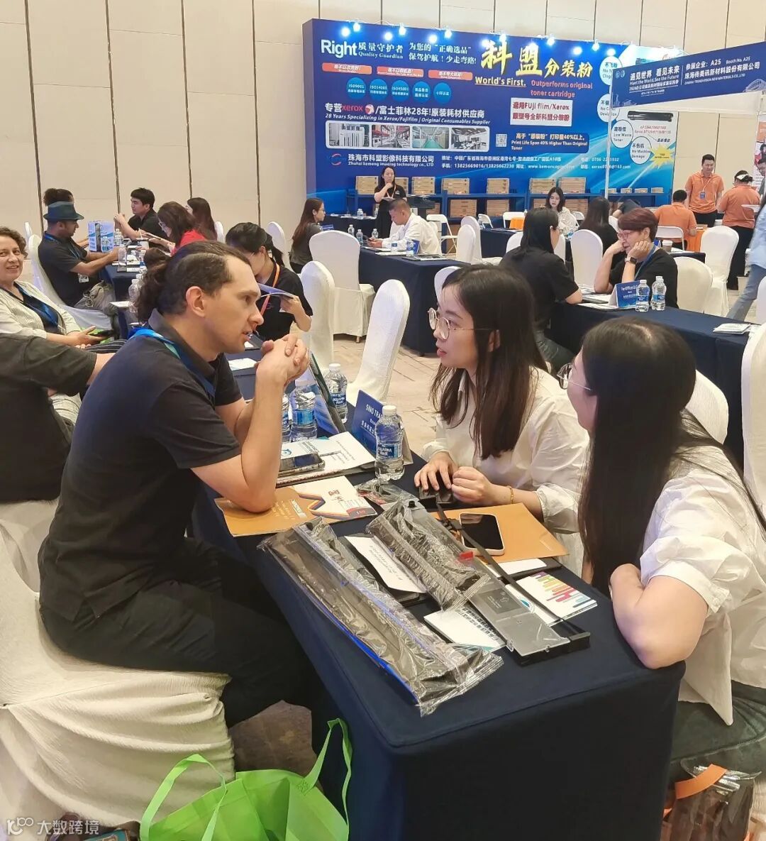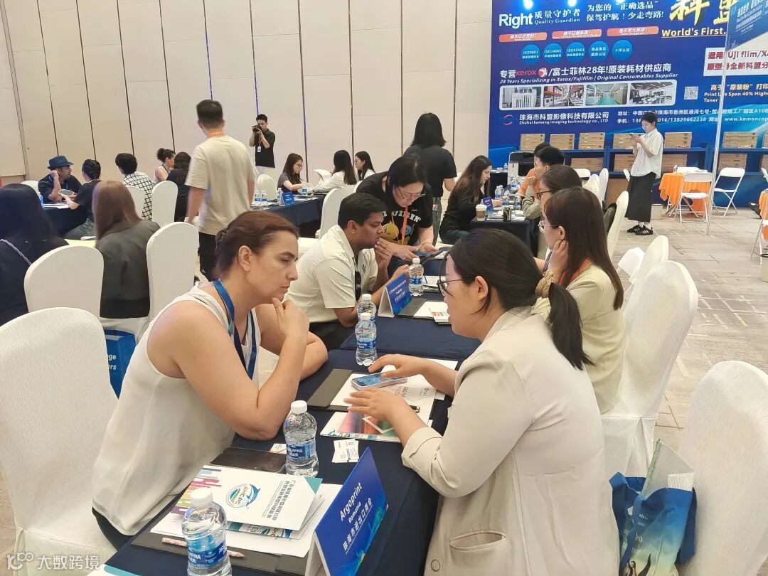 在采购季现场举办,邀请了包括纳思达、天威、展望、世纪神州、帝姆森、酷得墨领、芯烨、辉泓、紫科以及展商在内20多家珠海耗材企业参与对接会,广东进出口商会会长吴少纬、珠海市进出口商会副秘书长罗玲苑分别致辞与做珠海产业基地推介,阐述珠海打印耗材产业在全球的优势,随后各企业轮流与现场20个专业买家面对面交流,不少企业为了获得交流机会排队等候,现场气氛与平时行业展观展大不同,也得到了行业客户的认可推崇,希望以后多组织这类面对面接洽机会!
