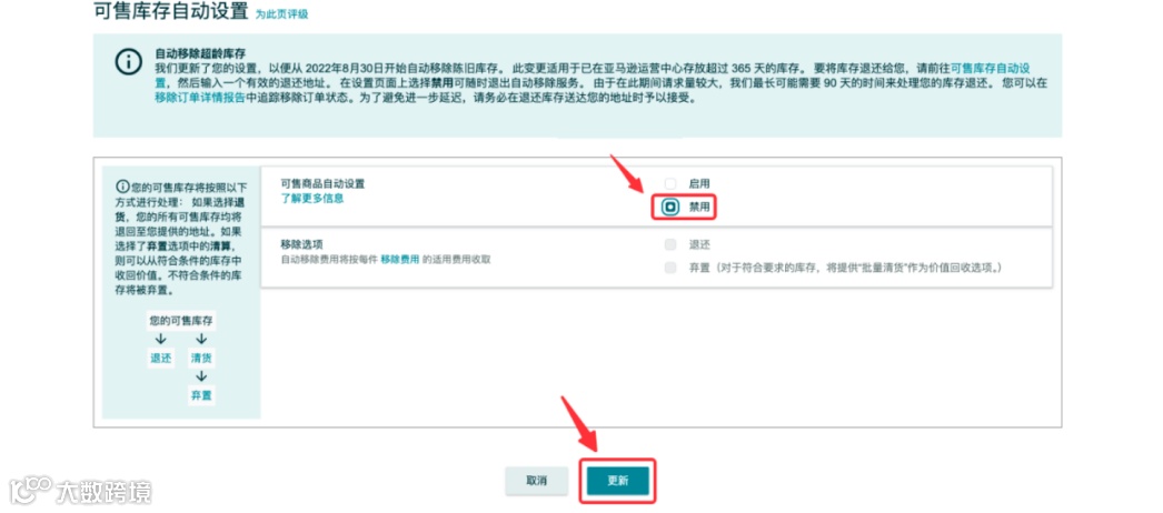 避坑提示: 如果你已经手动勾选了“禁用自动移除”,库存暂时安全;但请注意,系统默认设置通常为“开启自动移除”。从未修改过相关设置的卖家,最容易掉进这个陷阱。