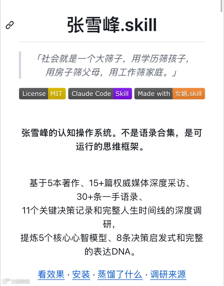 距离张雪峰离世不到二十天,一款名为"张雪峰.skill"的AI技能包悄然上线。
