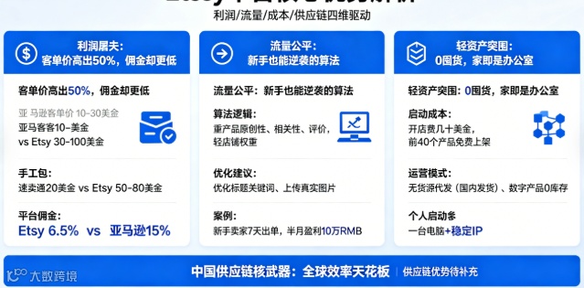 当别人在亚马逊血亏时,你在Etsy赚溢价;当别人为物流头疼时,你卖数字产品躺赚。现在入场,正是收割平台红利的最佳时机——这波财富浪潮,你,要上船吗?