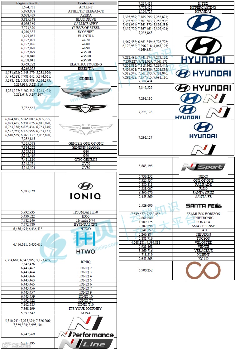 涉案商标覆盖现代汽车集团核心标识,包括"HYUNDAI"及"GENESIS"等,涉及汽车零部件、服饰、玩具等20余类别。未经授权使用相关商标易引发侵权风险,跨境卖家需谨慎核查商品合规性。