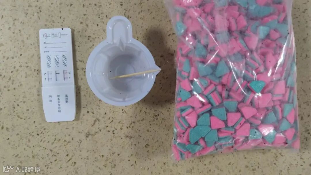 海关关员在对转运货物开展监管时,发现一票申报为“咖啡豆”的包裹机检图像异常。经开箱查验,海关关员发现5袋咖啡豆中的其中1袋存在明显二次封装痕迹。经进一步开拆,关员发现混藏在1袋咖啡豆内的半粉半蓝色药片1包。经现场试剂检测,药片呈甲基安非他明阳性。后经专业机构鉴定,在该批药片状检材中检出3,4-亚甲二氧甲基苯丙胺。3,4-亚甲二氧甲基苯丙胺是摇头丸的主要成分,和甲基安非他明同属苯丙胺类衍生物。目前,该案件已移交海关缉私部门处理。