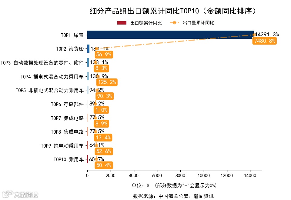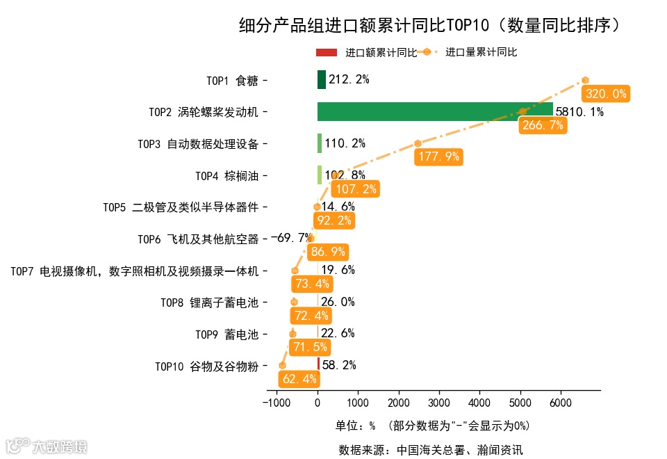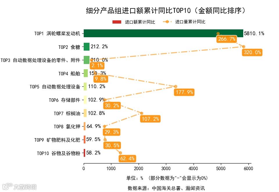 前3月,细分产品组中,出口金额累计同比增长的有99个,下降的有34个。增长最高的是尿素,出口1.9亿美元,金额累计同比14291.3%。进口金额累计同比增长的有82个,下降的有42个。增长最高的是涡轮螺桨发动机,进口446.2万美元,累计同比5810.1%.
