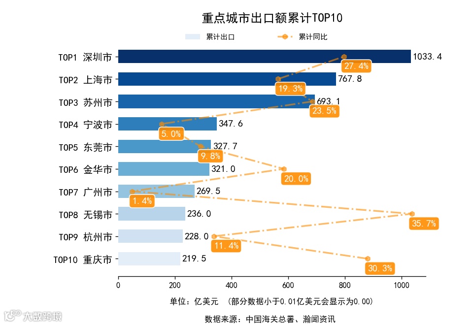 03 中国重点城市进出口排名