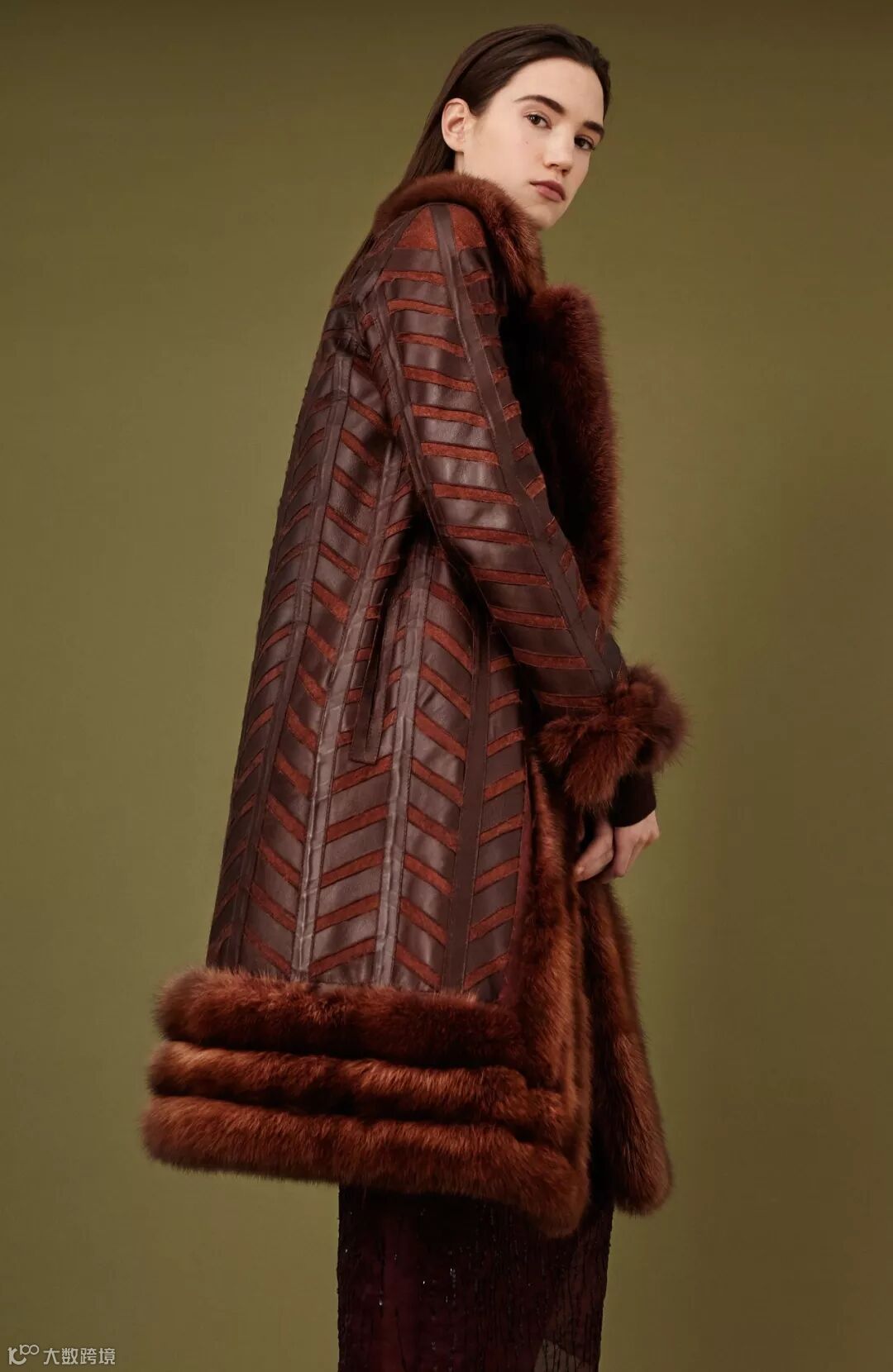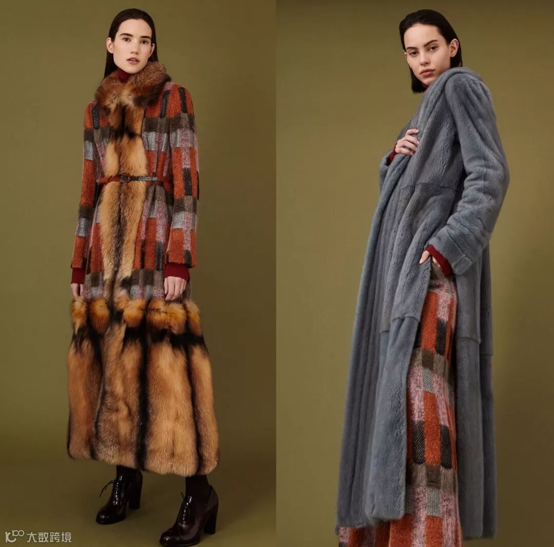 皮草行业内顶级的设计师都在致力于将皮草与时装进行融合,前两天另一篇介绍Braschi最新趋势的推文中就有一个佩斯利花纹系列,皮草采用水貂镶嵌的工艺呈现花纹,而整体造型中也穿插了佩斯利花纹纺织面料的单品。