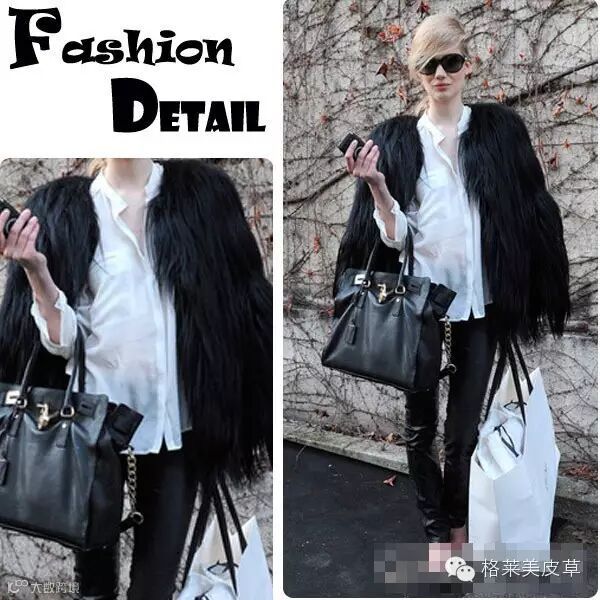 搭配技巧:白色衬衫+黑色皮裤+黑色高跟鞋+皮草外套