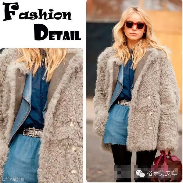 搭配技巧:牛仔衬衫+牛仔短裤+皮草外套