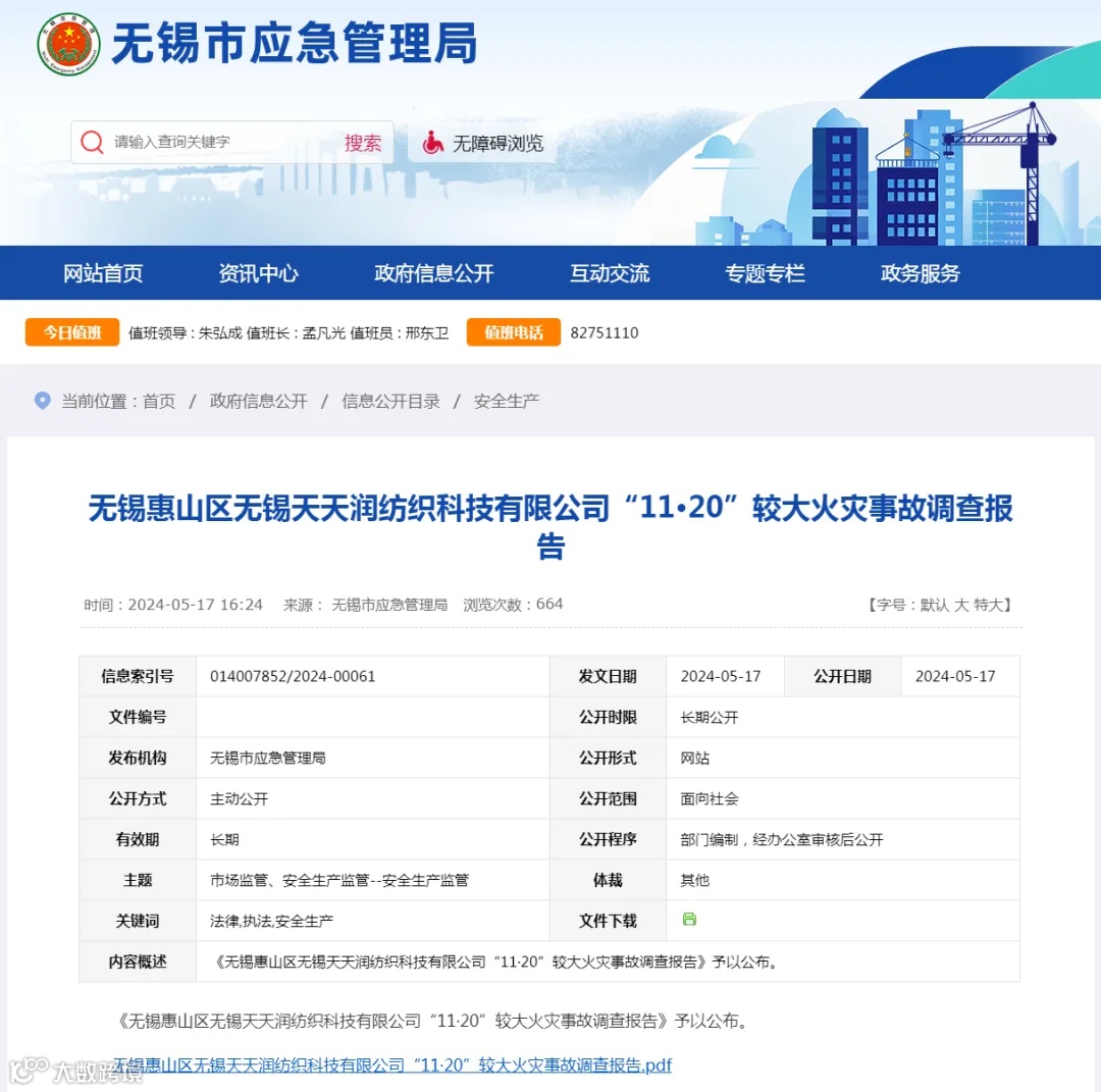 无锡市应急管理局网站公布了