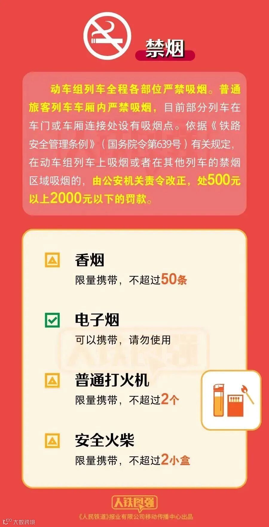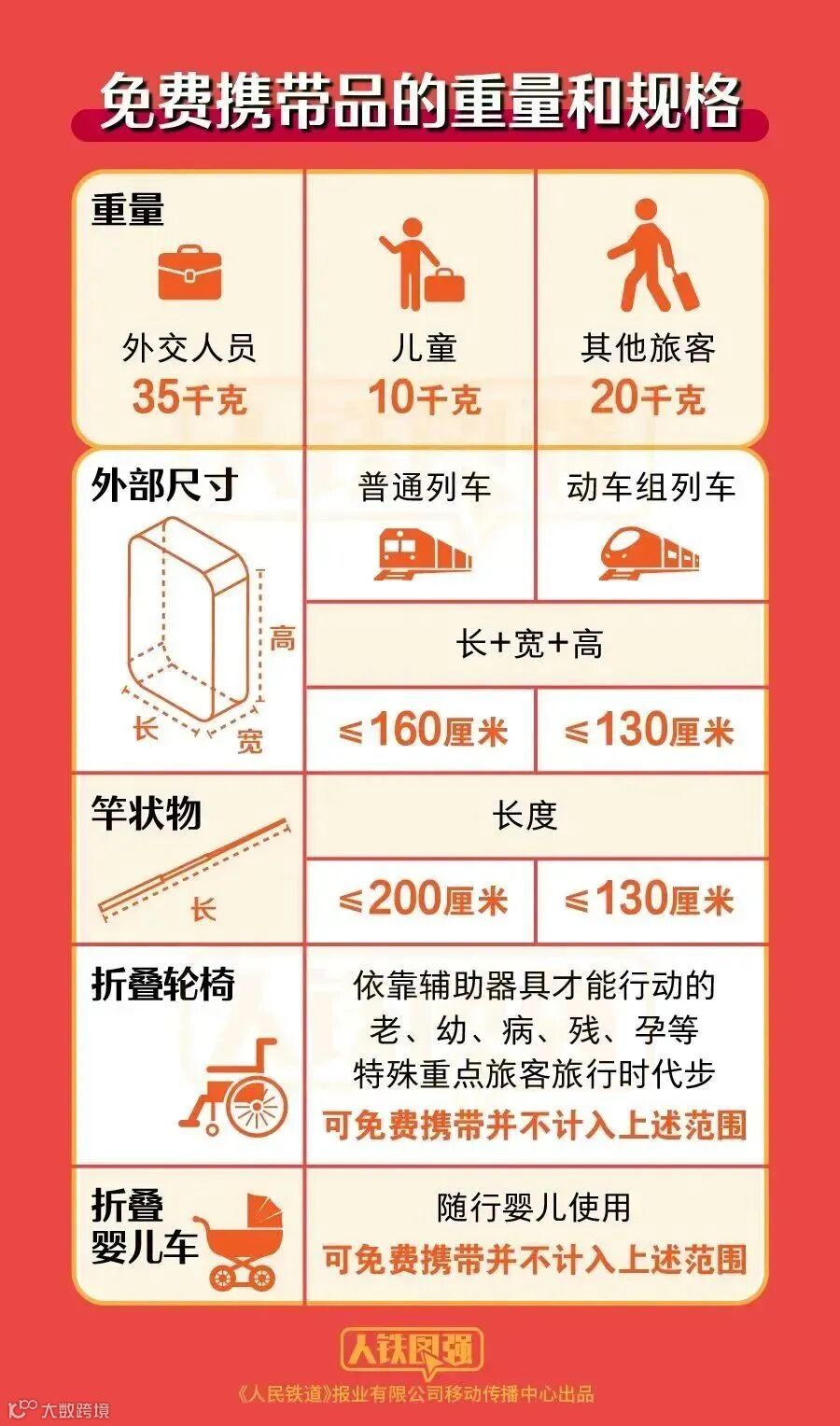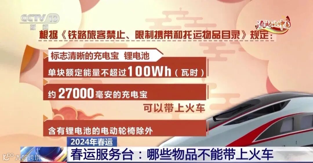 ● 标志清晰的充电宝、锂电池,单块额定能量不超过100Wh(瓦时),约27000毫安的充电宝可以带上火车,含有锂电池的电动轮椅除外。