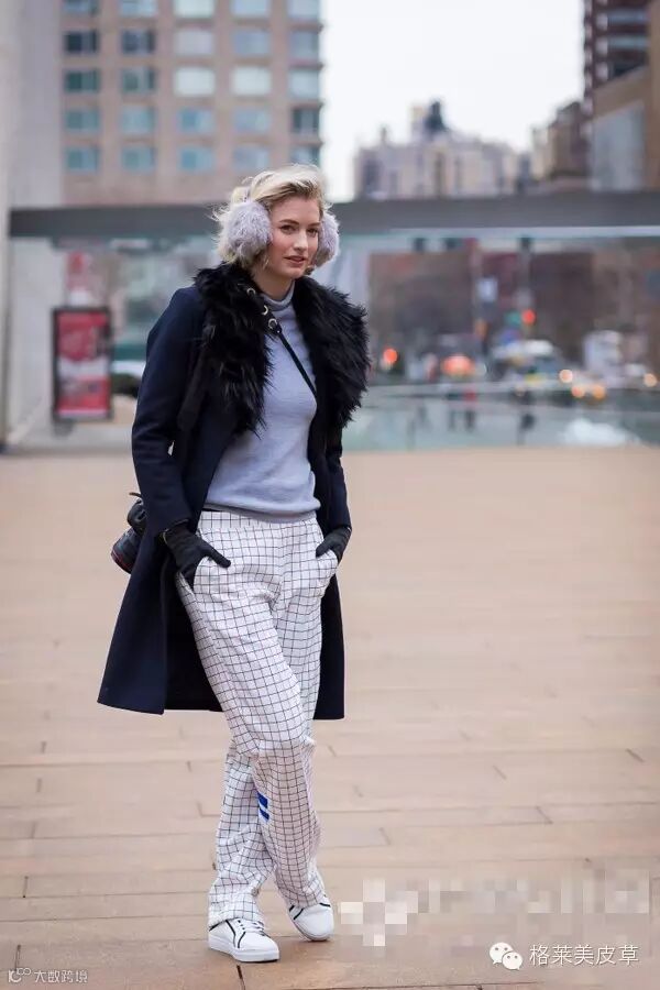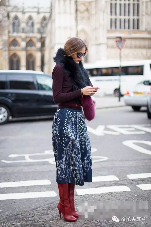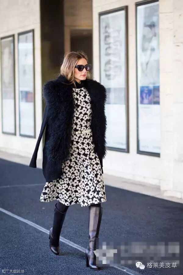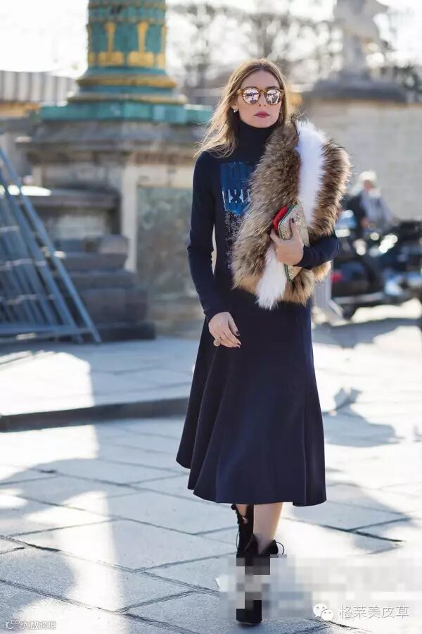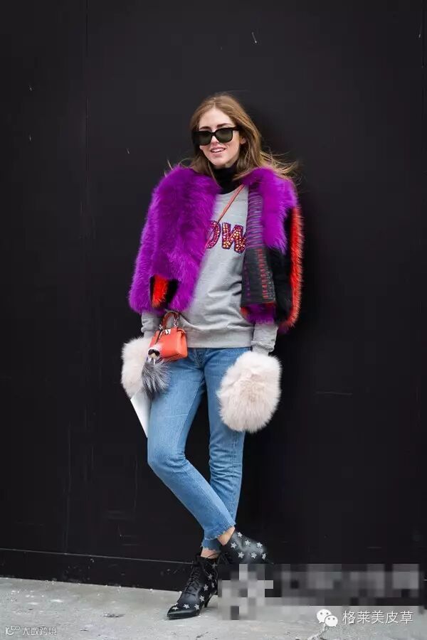 动物的皮毛围巾,总是能为搭配带来别样的奢华雍容感。看图中绚丽的紫色毛绒围巾厚实温暖,还充当起搭配的吸睛担当。