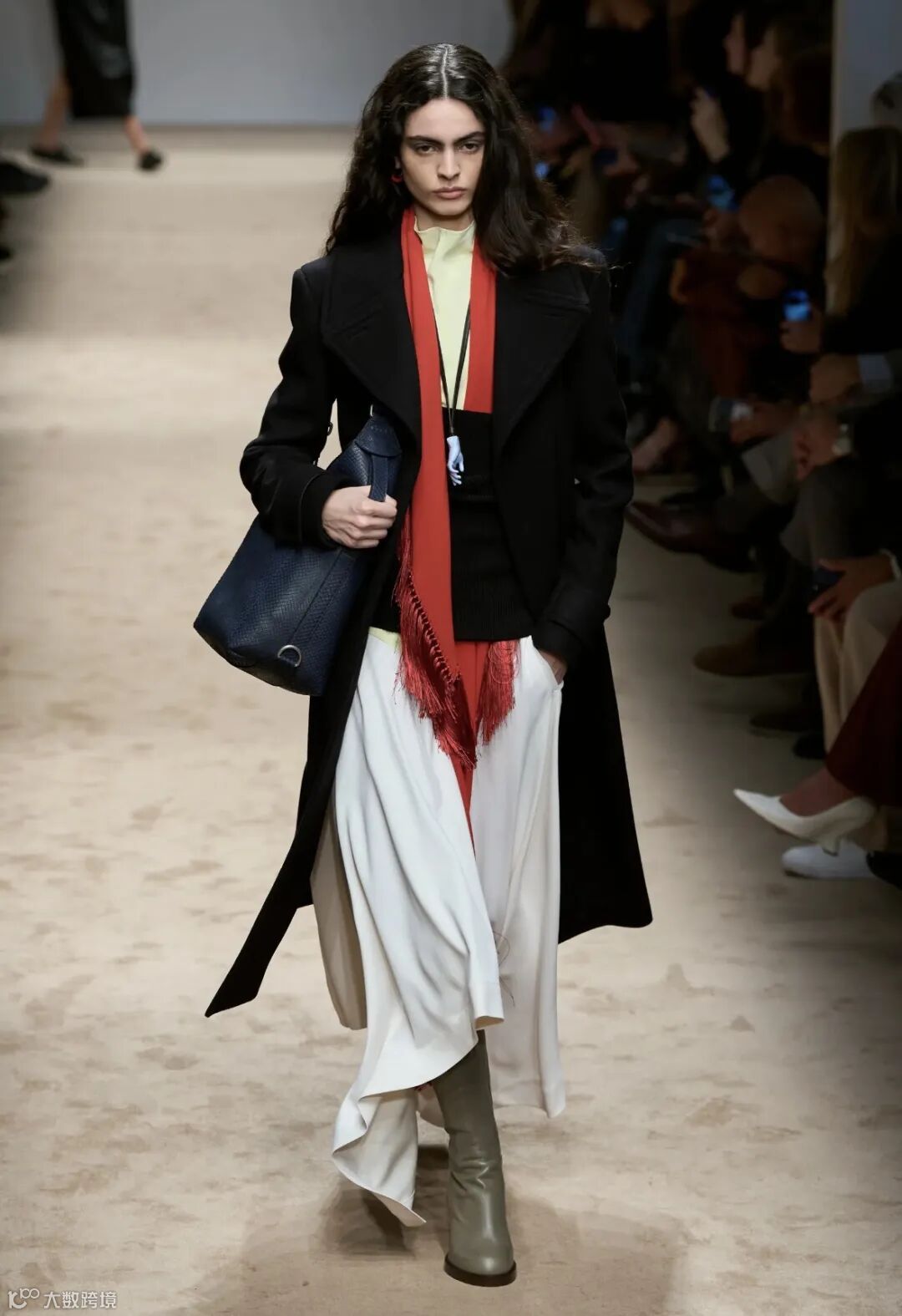 双面羊绒顺毛呢的中性色调与月光灰堪称天作之合。顺毛工艺让灰色的层次感得以完美释放,在不同光线下呈现出从浅灰到中灰的微妙变化。面料的双面结构赋予了衣物极佳的塑形能力,无论是利落的H型还是洒脱的A型,都能被完美支撑,呈现出一种“毫不费力的高级感”。