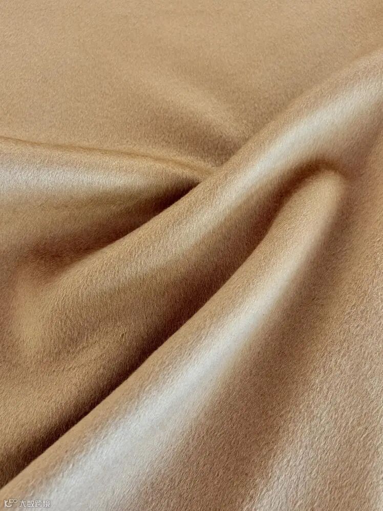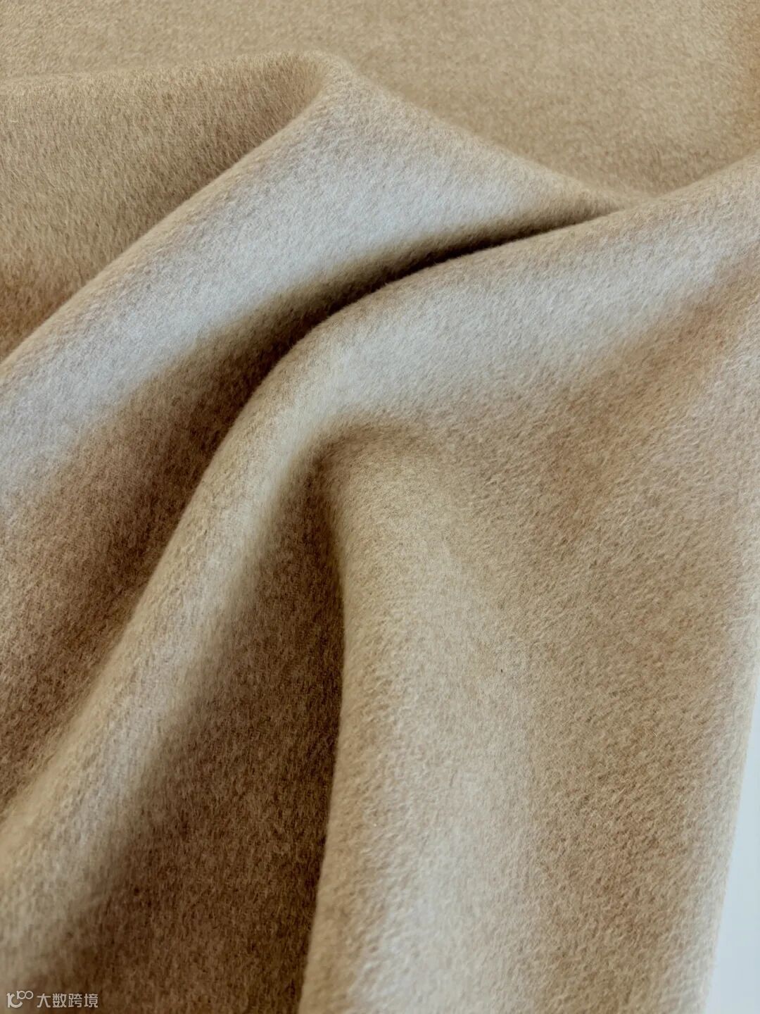 奶咖色与双面羊绒顺毛呢的结合,堪称一次天作之合。 顺毛呢的柔软触感,将奶咖色的温暖视觉体验加倍放大,让人产生一种忍不住想要触摸和拥抱的冲动。它的色泽比驼色更浅、更暖,如同被牛奶稀释后的咖啡,羊绒的天然绒毛感在其中氤氲开来,呈现出一种毛茸茸的、甜而不腻的高级温柔。
