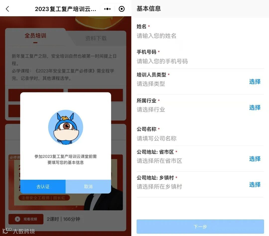 进入培训课程或资料下载详情页,需要完善个人资料。
