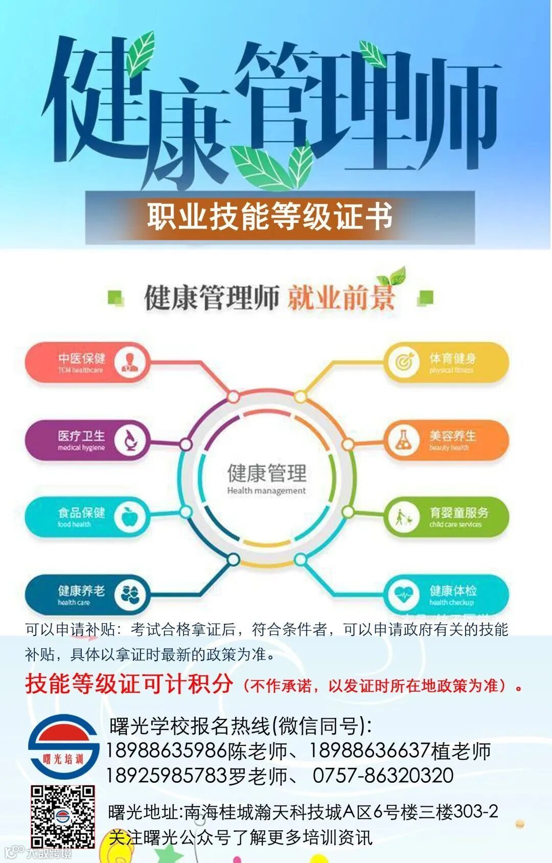 健康管理师是基于个人健康档案基础上的个体化健康事务管理服务,它建立在现代生物医学和信息化管理技术模式上,从社会、心理、生物的角度来对每个人进行全面的健康保障服务。是从事对人群或个人健康和疾病的监测、分析、评估以及健康维护和健康促进的专业人员。在学习提升自己的健康知识与技能的同时,符合条件者还可以申请政府相关的技能补贴,享受关于入户入学的积分加计(积分不作承诺,以发证时所在地的政策为准)。