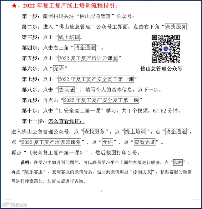今年参加线下培训班的,无论是新考证或者复审,只需在安马云小程序上看67分钟的复工复产课,即:2022年“安全复工第一课”,其他的视频不用看,操作步骤及凭证样板如下图: