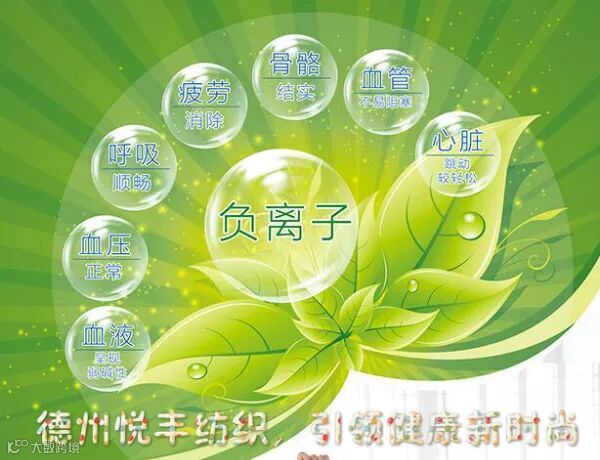负离子保健功能纱线可进行针织、机织等,广泛用于装饰壁纸、防毒口罩、婴幼儿服饰、窗帘、床单、针织用服装等。