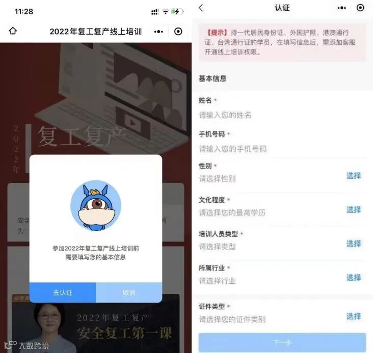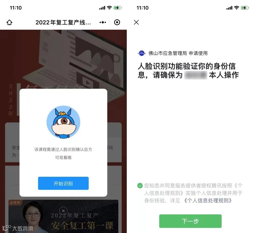 参加复工复产培训过程需要完成人脸识别认证。