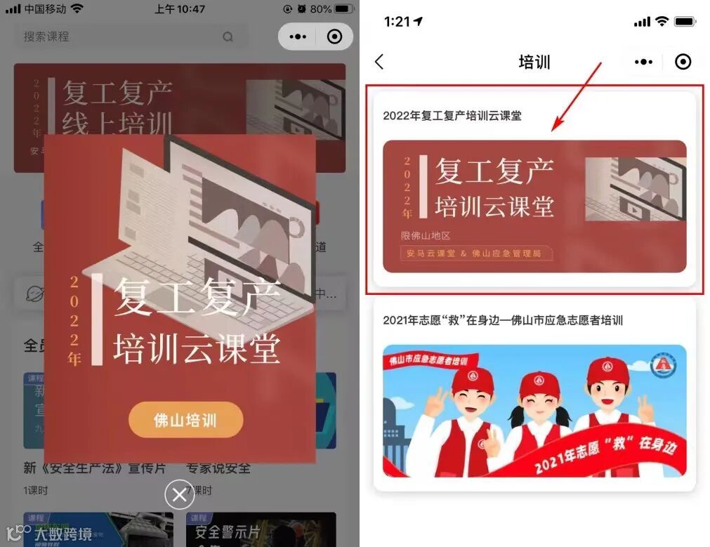 为指导全市企业做好节后复工复产安全培训教育工作,佛山市安委办提早谋划部署,于1月14日全省率先印发了《佛山市2022年节后复工复产安全培训教育行动工作方案》。目前2022年复产培训“云课堂”已经上线,今日正式开始培训学习!