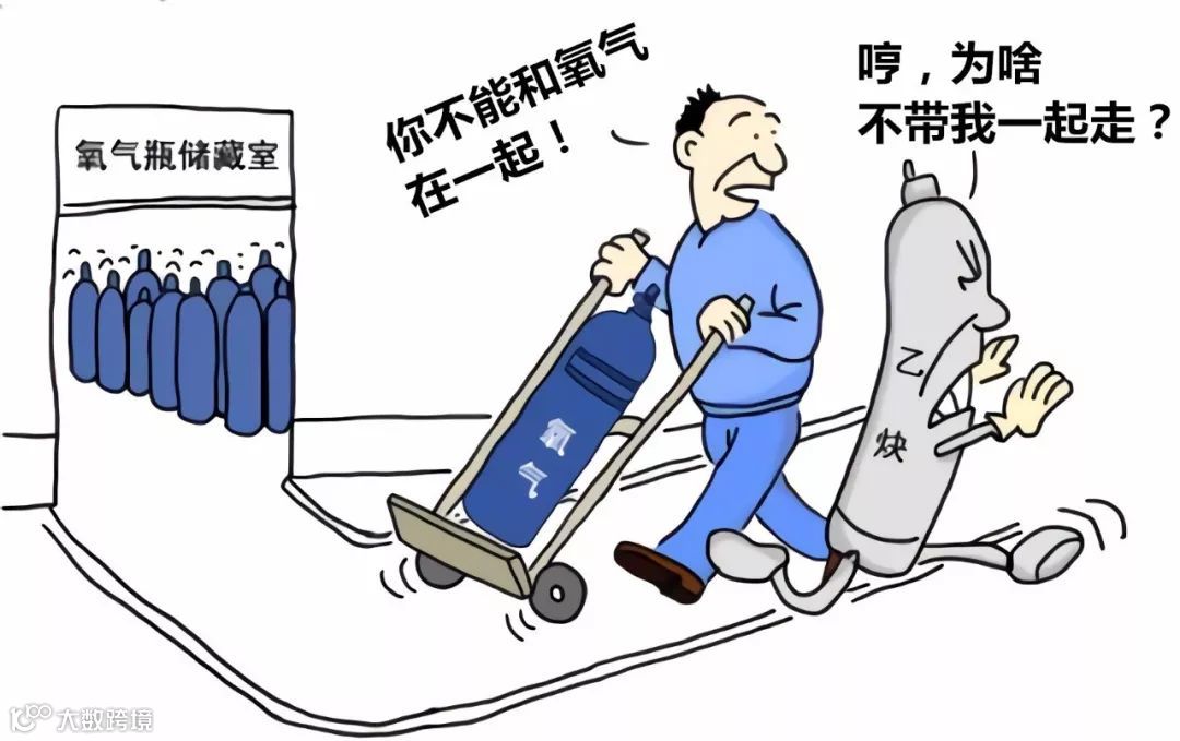 1. 氧气瓶、乙炔瓶不得靠近热源、电气设备、油脂及其他易燃物品。