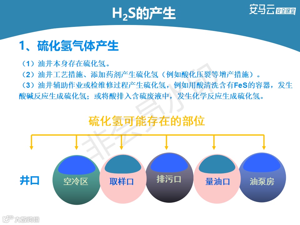 钻探开采石油过程中,由于石油中含杂质硫,常可发生大量硫化氢喷出。